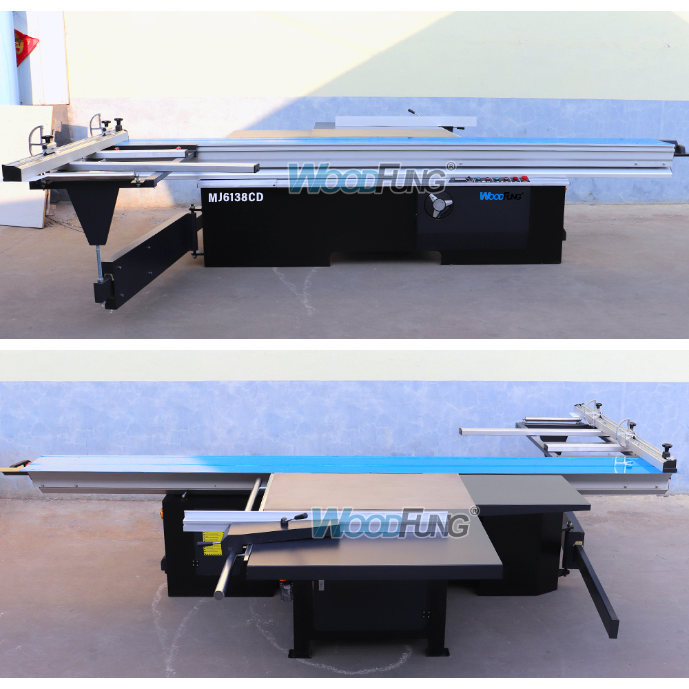 La sierra de mesa deslizante MJ6138CD de 3800 mm es la solución ideal para cortar paneles para tiendas de gabinetes de cocina, empresas de carpintería y tiendas de muebles que necesitan una sierra de precisión pero solo requieren ajustes manuales.