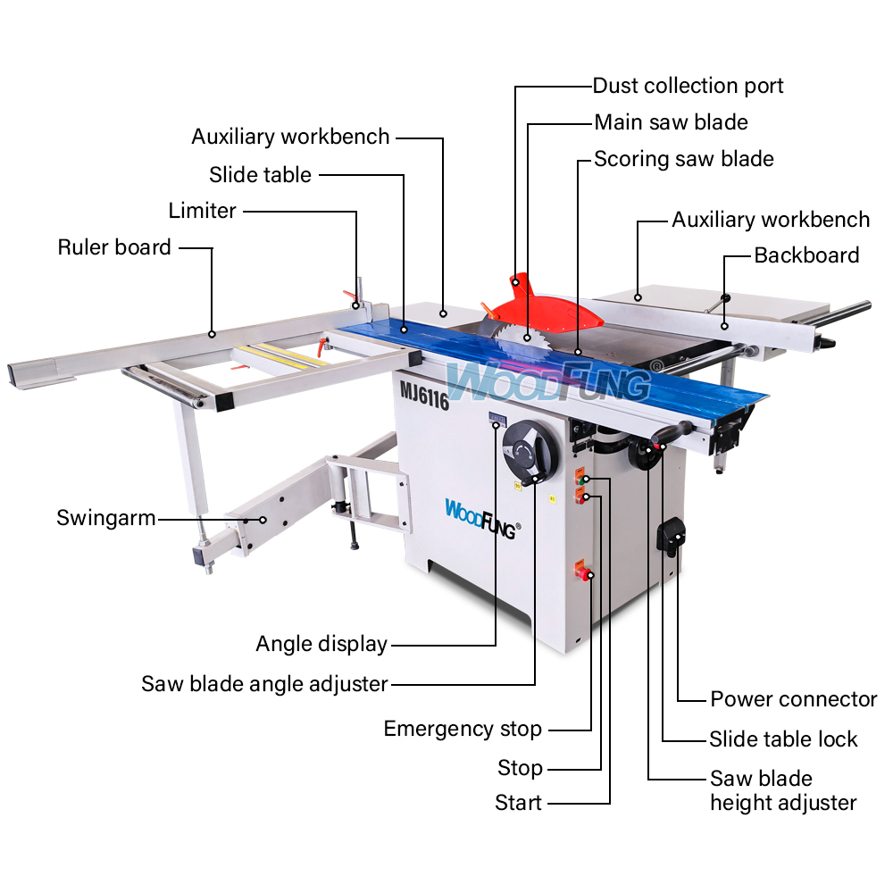 1. Esta sierra de mesa deslizante es una máquina de alta calidad producida de acuerdo con técnicas internacionales avanzadas y piezas de alta calidad que garantizan la precisión y una larga vida útil de la máquina.